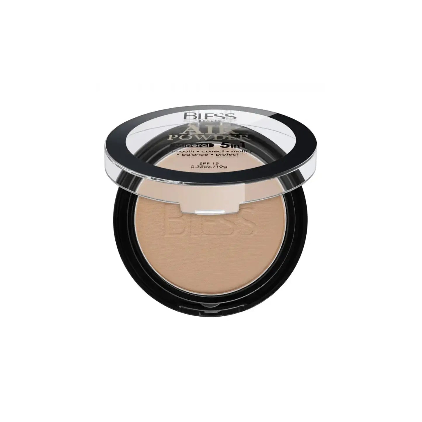 Bless Beauty Air Powder 5 in 1 — це багатофункціональний засіб, що поєднує в собі переваги мінеральної пудри та захисту від сонця SPF 15.